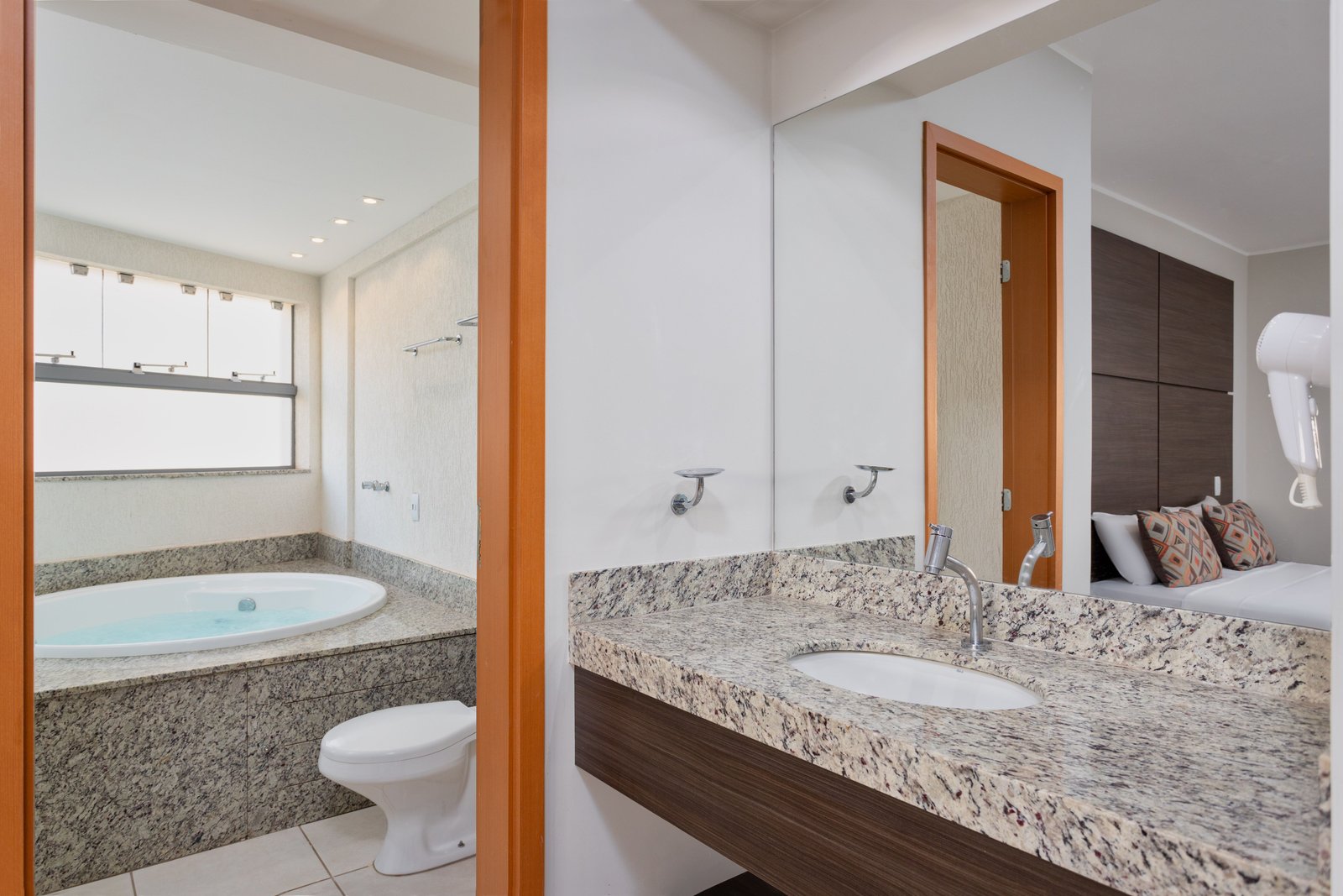 Escolher o Wyndham Olímpia através desta oferta exclusiva é garantir a máxima conveniência pelo melhor preço do mercado. O grande diferencial começa na localização estratégica: por ser anexo ao Thermas dos Laranjais, você tem o privilégio de uma portaria exclusiva, entrando e saindo do parque a pé, sem filas e sem custos de estacionamento. É a liberdade de curtir o maior parque aquático da América Latina com a facilidade de estar a poucos passos do seu quarto.